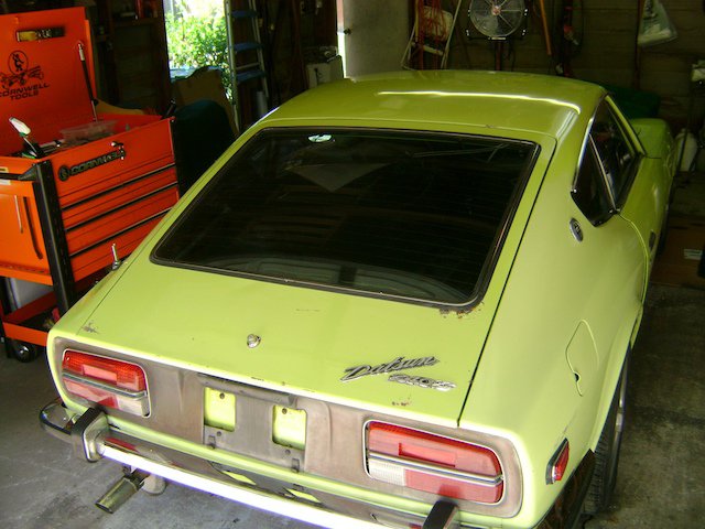 17. I remember reading this thread several mos ago and I got really inspired to buy myself a 240z for myself. I have restored many GM cars in the past, that is what we do at Vintagedreamcars.com. So maybe a couple of days after reading all off your thread I came Across the Z that I bought of Ebay, It is original a San Diego CA car and had been sitting in a garage since 1995. It was in no running condition but after 30min I got her running again, unfortunate all Fuel lines are rotten, paid 2k for a rust free Z other than a little on the rear hatch, having no Rust is half the Battle, less time and less money. I think you could appreciate the Color.