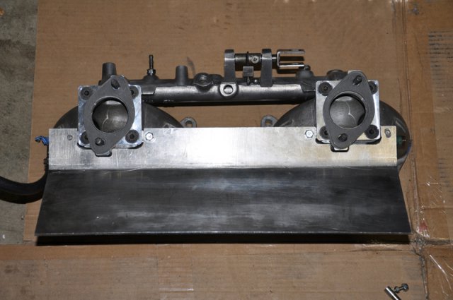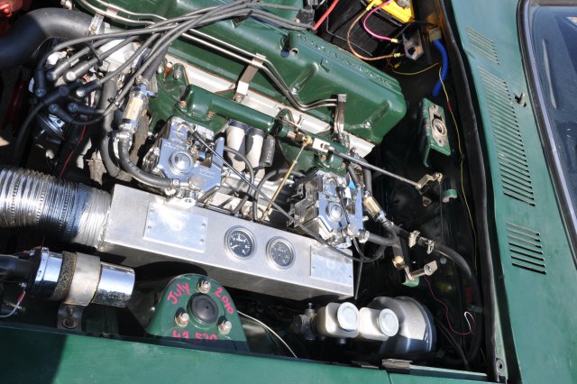 VERY cool whoever made that. I think there is another member here who has a similar 4 barrel intake that bolted to the SU manifold. Unfortunately I cannot tell you who it is, but here is a picture of their car that I have saved on my computer.