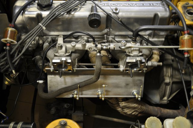 I know of one local gentlemen who has completed this swap on his L28 powered 240z, and I borrowed from his linkage setup. Unfortunately I cannot tell you about any felt power changes between SUs and webers because I am also dropping a 4:11 R180 in the rear of my Z at the same time as I complete this swap. I went the MCHH route because they are significantly cheaper than triples, I haven't heard great things about dual downdrafts, and I think Holley swaps are a little uninspired. So I am left with these quirky carbs that not too many people know about unless you describe them as a "DCOE cut in half" - which they are. Total cost of this swap will be about $450-460. Not as cheap as I had hoped when compared to the Holley swap or rebuilt ZTherapy SU's, but others can probably get it done cheaper than I did. The Weber kit is for a Triumph TR6 which has a 2.5L straight six engine, so converting this over to a Datsun with a 2.4L L6 engine wasn't terribly difficult. Link to Weber Carb In researching these carbs, the biggest complaint I've heard of is vacuum leaks. Even my local buddy had vacuum leaks. After receiving my carbs in the mail, I can assume that the origin of these leaks is from the gasket that connects the carb to the adapter supplied in the kit. So I ordered the Weber DCOE soft mount kit to replace this presumed faulty washer. Nice thing is you only need to order one kit, and that will supply each carb with a replacement gasket. Updates on vacuum leaks will come once I turn it over and get tuning on it. Here is a teaser pic of what I've done thus far... more will come as I finish it off.