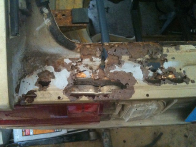 12. So now I have about 3/4 of the top piece left that is still useable. I am at a cross roads. The way I see it I have three options. 1. Do I buy the replacement top panel from the Z store? 2. Do I use what I have and just add metal to it to extend it to the corners? 3. Do I just cut the top piece so it is even on both sides from the middle and weld it back on. Option three is a little outside the box and I have not seen anyone do it. I could cut it even with the flares for the tail lights That way I still have the stock points for the license plate and lights for it. Then I could just make the rest of the top as flat as I can with body filler without having the lip that protrudes out. Looking for any advise or suggestions.