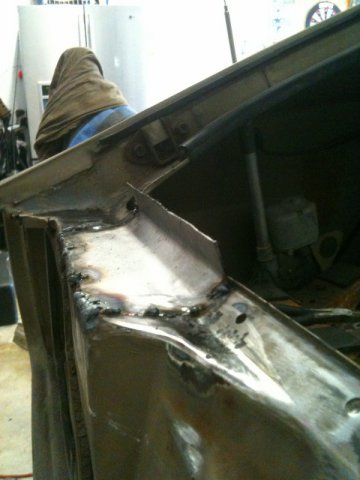 9. I also worked on the rear hatch deck lid area. I posted a write up about it in the Fab section. http://forums.hybridz.org/index.php/topic/107643-rear-hatch-deck-lid/page__view__findpost__p__1007074__fromsearch__1 Let me know what you guys think and if you have any ideas. This weekends plans are: 1. Pull the radiator and clean it out. 2. Pull off the things attached to the firewall and engine bay. If nothing else, just kinda pull the things away towards the engine, so I can start painting it. 3. Would like to get it all back on the firewall and engine bay walls. My father-in-law (the one I got the car from) is coming up from AL for the 4th and I would REALLY like to be able to fire the engine up for him. So I may have to hold off on the painting thing, at least until he goes back home. I have started to think about doing the floor pans myself. The rear hatch area turned out to be a challenge, but I got through it. It would be really satisfying to be able to do everything on this car in my own garage. It would also give me a chance to work on my metal skills. I am finding out I have a little and they are getting better. Worst case, I can always cut it back out and go another route.
