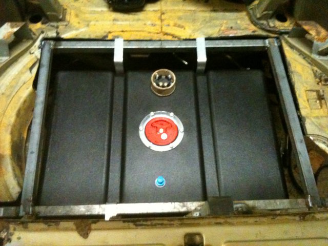 I also got the frame for the fuel cell in and the cell in the hole. After reading all the posts and seeing the pics of everyone else that has installed a fuel cell, I knew i had to make a frame to mount the cell. It adds strength to the rear frame area, since I removed a lot of metal from the hatch area. Now all I need is a 45 deg filler neck and to cover the hole with sheet metal. Don't need any road noise and exhaust in the car.