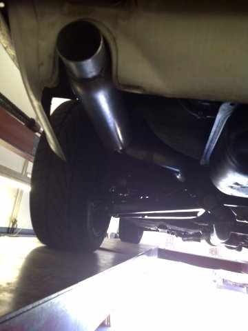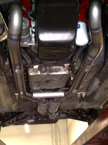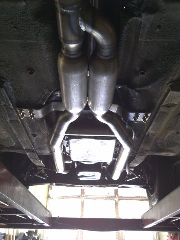 The two in the front are dynomax 2 1/2" bullet mufflers and a 3" bullet muffler in the rear. The work was done by Fabtech (chatsworth, CA.)