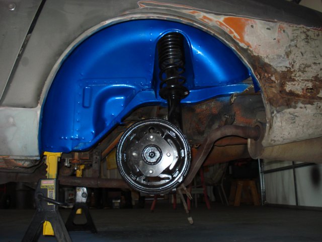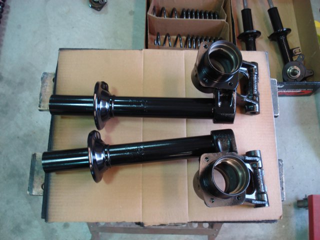 Here are a few shots of the suspension rebuild. I used Eastwood's Rust Encapsulator and Chassis Black to refinish the parts. -