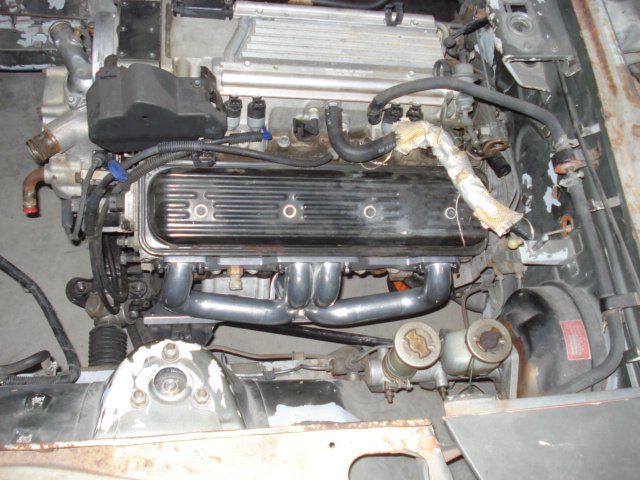 I dropped my '73 Z off tonight to have the exhaust built this weekend. I'll be going over the details with the guy doing the work tomorrow night. He runs his shop out of his garage. The LT-1 is in there with JTR mounts. The headers fit without any trouble. I also have the JTR radiator mount kit with a Chevy radiator and an electric fan I pickup up out of a 90's Mercury at the salvage yard. The drive shaft from the donor car ('95 Firebird) is at Northern Colorado Driveline in Greeley, CO to be shortened and balanced. They are also going to replace the rear yoke so that a standard u-joint can be used with the JTR mounting flange. I replaced the R180 with a 3.9 R200 and RT mount. The tranny is a T-56. Next up is plumbing the fuel lines and a small fuel reservoir. Then wire up the PCM and hope it starts...