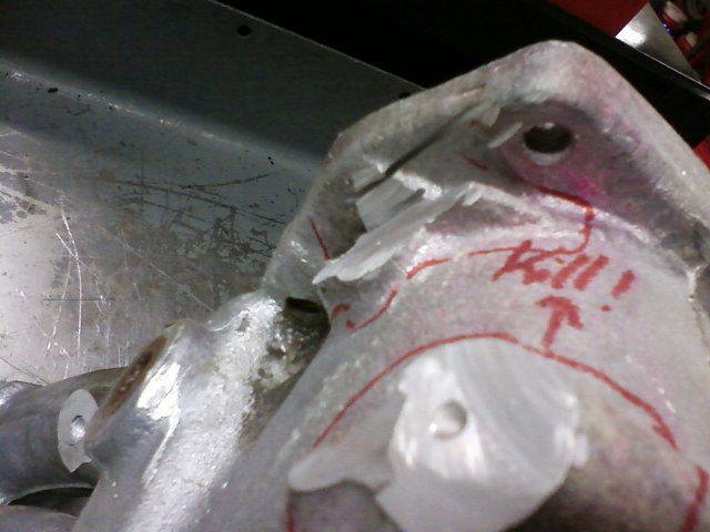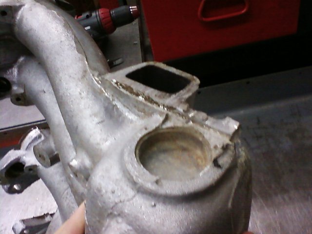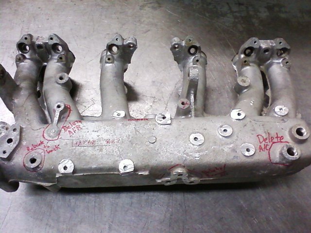 I've been working on cleaning up this intake while there is snow on the ground and not much else to be done. Since I can't really find anyone around town who wants to sell me an N-42 intake, I've been working with what I have. Thanks to BRAAP for his awesome guide. BRAAPs L6 EFI-induction advice and tips. Here are some pictures of my progress... (I marked things so I wouldn't have to keep going back and forth from the computer all day) I goofed up here, and cut a bit too far into the heat shield mount.(at least that's what I think it was, its been a few weeks now.) I used a die grinder with a cut off wheel to remove the bulk of the ugly bits, and will grind the rest of the bulges off later. The EGR will be smoothed out and welded as well, obviously. I just need to get it cleaned out first, which I am unsure how to go about doing. I am having the hardest time getting the hex bolts from the EGR plenum, and don't know who I'm supposed to clean the inside for welding without removing them. Before I go any farther, I just wanted to have some input and be sure that I'm headed in the right direction with this, and hopefully help someone else trying to do this, as I have learned so much from this site, but contributed next to nothing.