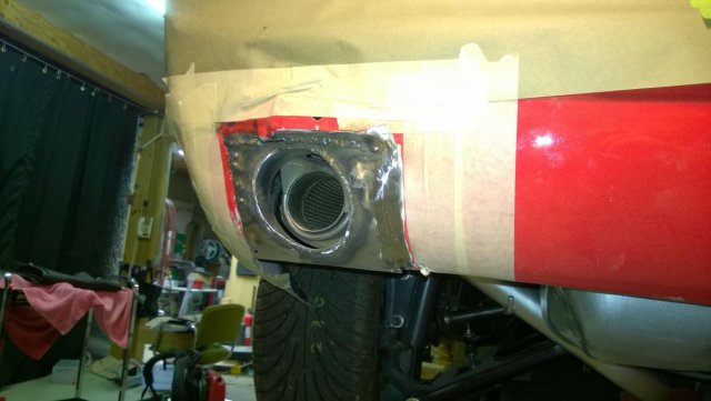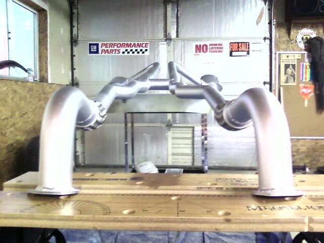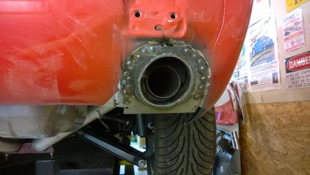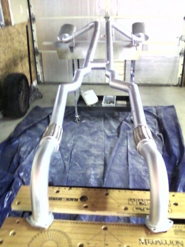 My exhaust system was beginning to show the first signs of rust, so out with it! Then some sanding and some wiping down followed by several coats of high temp aluminum paint. Then I got the sudden desire to start doing some body work. Two hours later I had the rear and front suspension and the diff and mounting out of the car. The trans and motor are unbolted and will be dropped out next. Guess I am committed to doing some body work!