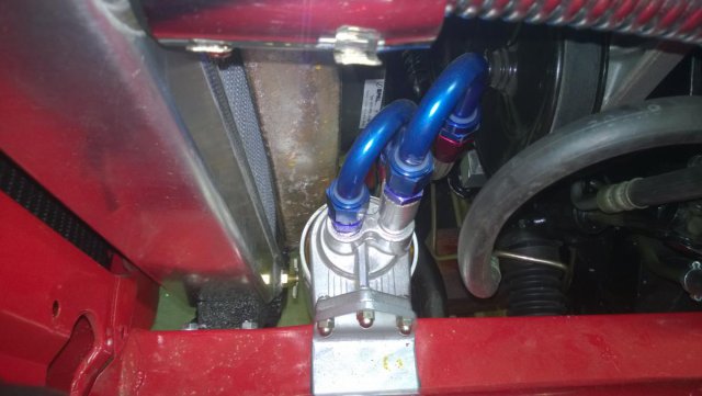 I was concerned about exhaust heat affecting my oil cooling and the messy oil changes. This is how I did a remote oil filter on a sb 350