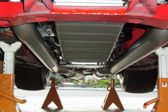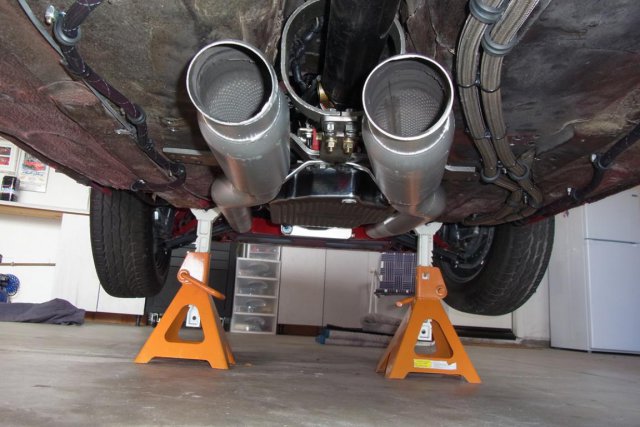 These pics show the Quick Time Pro Hoosier street tires and also the Dynomax, #24222 Race Bullet Mufflers. -