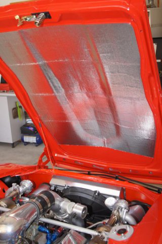 Custom Strut Bar has been installed. This D.E.I. reflective high heat barrier will protect the hood paint. -