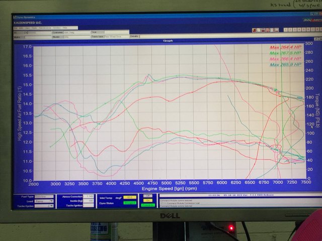 05.18.2018 Dyno Day Report 630am - 815am I arrive at my road testing location, and continue to prep for my dyno appt at 9am I continue to refine the performance of the short stack webers I achieve a near-constant 13.0 AFR from ~4000-7000 RPM Car is smooth as silk at the top of 4th gear, 120ish? I have known good jet settings for 38mm venturis with long stacks, and 40mm venturis with short and long stacks, and have swapped back to known good settings several time this week. Repeatable. 845am Unload car at dyno shop Car fires right up, I turn it off after driving it off trailer. Tech wants to get in the car and put it on the dyno. Against my better judgment, I allow a young tech to attempt to start my triple carbs (neither warm nor cold motor) 915am At this point I kicked the tech out of the car and I'm trying to start it. Flooded? Fouled plugs? I decide to refuel, allowing time for the flooded carbs to clear. Won't start 10am New NGK plugs installed Fires right up, I drive it onto dyno Tech has me accelerate slightly to set the wheels. I am already alarmed by dyno noises and vibrations, I am assured this is normal It's not like I've never dynoed before 1030am Car is NOT the same car that I've been tuning all week! Making jet changes are having OPPOSITE effects then what happens roadside! Example: changing main jets 10 up or down DOES NOTHING!? Example: changing air corrector jets now behave as if the main jet is being changed? Additionally and separately, my ignition is being screwy A few times, the rev limiter did not kick in AT ALL Several times, the car wouldn't accelerate on the dyno, but would simply hesitate and chill out and get groceries Several times, while getting groceries on the dyno, VTEC or something kicked in because the acceleration would suddently PULL VERY HARD. Pulls back to back did NOT have the same performance. We started to not trust the data, sometimes doing 3 pulls for every adjustment. WTF is going on? 1130am Despite that the rules of tuning are now unpredictable, despite that my known settings are now shit... I finally find a good AFR again, very near my 13.0 AFR that was attained roadside that morning Time to move to timing Dyno is scheduled for another customer at 2pm! At this point all I want is to capture data for the Weber short and long stacks 12pm I start messing with 1000RPM timing I get my triples idling very nicely with a screwdriver I start messing with 3000RPM timing Engine is hot, needs to cool 1230pm Tech announces he is going to lunch No other techs around 1pm Pulls resume I am less desensitized to the vibrations I continue to express concerns and I am told all is normal 115pm Eff this, I'm getting my car outta here I drive off the dyno and onto the street, vibes are insane, loud at 35mph Day is done 215pm Drop my car off at a general auto place to investigate on a lift They tighten the driveshaft and right CV axle (inner bolts) Evening I pushed myself so hard this week that I start shaking and aching and getting sick Straight to bed around 7pm Weekend Saturday - rest. I skip the first race the car can actually enter... because the driver can't go physically. Sunday - autocross. Car kicked my ass, in a good way. Couldn't get the rear to settle down, which was delightful. Not sure if I had "fun." Big losses this week. That's sad. Ignition My ignition was crippled by something that day. The hall effect sensor is supposed to negate interference? Haven't called Electromotive yet. Depressing. I will. My theory: the dyno's ignition inductance pickup was near my hall effect sensor's harness, where the sensor wire is less shielded for a few inches to allow the sensor and XDI harness to clip together. I suspect if this had been relocated, the issue would have cleared. (Some positions definitely made it worse!) Dyno Graphs The way the dyno loaded up (very delayed)... it was very hard to scientifically produce consistent dyno runs. You can see some really screwy dyno plots. The ignition pickup had a really hard time, clearly. I attempted to attain WOT by 3500 and 4000 RPM as the engine tune allowed. In most cases, if I rolled into WOT slowly, it worked out. If I rolled quickly, it would be a wasted dyno pull (delayed dyno loading). A few times I forgot I was supposed to achieve WOT (for consistent analysis of what the change did) and throttled the carbs through the reverb RPM range. Very interesting to look at the torque plots of the throttled runs! WOW! (Enter driver as a patch! Haha.) Summary Phudge. What the crap, even? I'm still going to mess with a few of the air horns for awhile. I'll still come back... not at this dyno. The staff, to me, was more interested in getting through their day than helping their customer accomplish anything. They dismissed my concerns about ignition and vibrations. Not helpful. Sigh... A not-quite what we want to hear video: https://www.youtube.com/watch?v=vk_MpV3F9Ys -