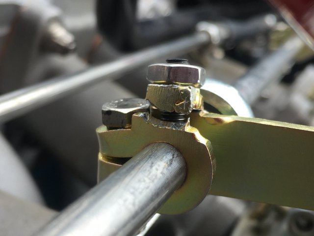 Hi Marcel. I'm not sure I'm following you. I do have custom throttle levers with a set screw. The purpose is to hold position throttle arm angle on the round throttle bar, and not slip. Metal tabs were welded and tapped, and then the arms were custom coated to match OEM Weber. They do not have adjustments for idle. Idle speed is controlled by the carburetor idle speed screws (1 per carb) and the adjusting the lengths of the connecting links between the custom throttle levers and the carburetor throttle. It isn't the best design / best welds. I broke one of the welds too easily. Very disappointing after all that effort. Now it all has to come off and be resynched... -