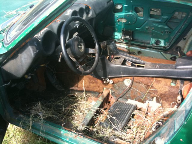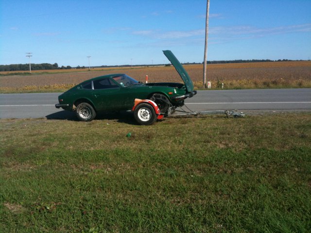 2. Hi everyone. Been lurking and researching on the forum for a while now, and I figured its about time I post some pictures of my own. After looking for quite a long time, I finally found a Z about a year ago that was a good enough deal that I couldn't pass it up. This thing was rotting away in a field in Arkansas. It had blown a head gasket about 10 years earlier and had sat since then. Picked it up for $300. Floor boards were completely gone, but other than a few little pockets here or there, it is fairly rust free One of the two tires that would (sorta) hold air blew out about 15 miles into the journey home. I rarely say this, but thank god for walmart. Everywhere else was closed on a Sunday afternoon. After squeezing it into my tiny apartment one car garage, the first thing to do was to pull the engine and move all the other stuff that I wont be needing for awhile to storage to give myself a little room to work. I wont be needing the engine or transmission since they will be replaced with an LSx motor, and its a good thing too because everything on the inside of the engine was rusted to sh*t because of all the water sitting in there for so long. Lots of parts are still good though (carbs, intake, transmission) so if anyone needs something let me know. I would give the transmission to anyone that wanted to pick it (Memphis, TN) up so I dont have to fool with it. After that I tackled the floor pans. I decided to go ahead and make my own instead of spending money on a kit. I also wanted to build a subframe of sorts to help strengthen the passenger compartment, give me somewhere strong to attach a roll cage to in case I ever decide to go that route (not in the current plans), and give me a good easy mounting location for the 350z seats that I picked up. Thats about it for now. Ive got the rear suspension pulled off, and need to do a little refurb work before I reinstall that. Ill post more pictures when I get somewhere with it. Any comments welcomed.