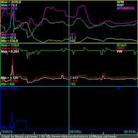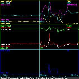 19. I installed 2.88 firmware the other day and the new x-tau enrichments are pretty impressive just using the defaults for accel and decel. Also, a HUGE improvement with how MAP is now measured by MS. I have a mapdot threshold of about 30 and the sampling rate is something like 25ms.....the recommended default. Works really well My setup is a stock turbo (82) longblock with a t3/t04 running MSII for spark and fuel. Pallnet fuel rail with 33lb injectors at 50psi, 240 TB and TPS, FMIC, MSD, etc. The car runs great and is currently set at a max of about 12lbs of boost. Here is the problem, the first time that I loaded the new code 2.88 there were some important X-Tau settings that didnt get carried over into Megatune. I wound up recreating my MSQ by hand and later imported my AFR, VE and Spark numbers from saved Vex files. Seemed to work and the defaults showed up....the car ran perfectly. There are a lot of new settings in this code but I can't for the life of me figure out what is going on right now. Car starts and runs great but a few moments after start it sometimes goes way lean....from about 12.5 to 15 or so. I looked at the PW's and they are not changing as the car goes through these oscillations and fuel pressure stays the same. For the most part the lean condition will go away in a few mins or 10 mins at the most. This seems to narrow it down and I was thinking it was a fuel issue but by shutting off the electric fan I can sometimes make these lean oscillations go away immediately. Strange This got me thinking and I took another box that I have for a backup and put my old 2.687 code on it and currently have no more oscillations. Tomorrow I will swap both boxes in and out and try to duplicate what is happening. Will also get a few datalogs. Wondering if anyone else had had a similar problem. Some ideas: warm fuel in the rail (not very likely at these temps) Contaminments in the fuel, rail or injectors that behave differently at diff pulwiths some type of interference with the fan on, but why does this only happen sometimes? Is this prob specific to v2.88, wondering if anybody else has had a similar problem. Thanks, any ideas would be appreciated.