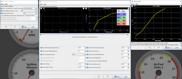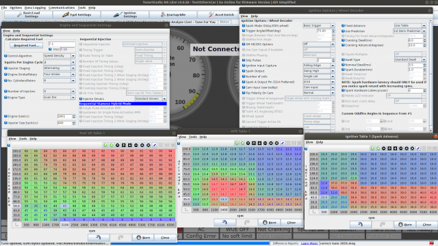 Since it seems the FAQ section can't be posted to, the Map sharing thread is effectively dead to new data. So I guess I'll just keep a running thread log of my tune and config as it changes. I started my tune by taking the "example config" tables, and then adjusting to "ballpark" from what I was seeing in other people's threads. Not many people were running a setup like mine, so it was difficult to get close, so I tried to err on the side of safety for most of my maps and I've slowly been edging them closer. My ignition map was far too aggressive to start with, and in some areas still is, but I've been pretty happy with the performance thus far on this combo, despite everyone's warnings of compression, detonation, and not being "good for boost". My setup: F54 turbo bottom (dish pistons) MN47 Head (factory through and through for now) Factory T3 (likely the first thing getting replaced) running on factory wastegate (6-7 psi depending on how it feels today) NON-Intercooled (one of my defining self-limitations, I'm keeping it this way) Non-EGR N42 Intake manifold DIY Autotune Dizzy Trigger Wheel Bosch Blue 260cc o-ring injectors (Ford T-Bird and others) running sequentially Pallnet Fuel Rail Factory fuel pump Factory fuel regulator Factory fuel filter Factory fuel damper still in place Tuning on CA Pump 91 Flex fuel sensor installed, showing my pump gas indeed is between 9-11% ethanol D585 LS Coils running COP Now, Configs: (I'm only posting windows of which I've altered settings) Basic/Load Settings Fuel Settings Ignition Settings Startup/Idle (I don't think I've changed much here other than WUE) Accel Enrich (lot of work to do here still) Advanced Engine I've also attached my tune file: CurrentTune.msq And the last tuning run logs: 2019-03-02_10.38.01.msl.zip NOTE: The above tune file and tables have been updated since that last log, so if viewing in MegaLogViewer the table data won't align properly. I'll likely be updating this regularly over the next few months as I'm making changes often. In no way do I recommend just copy/pasting any of these settings/values without understanding the risks. I make no guarantees for the validity of this data or lack of harm to your engine.