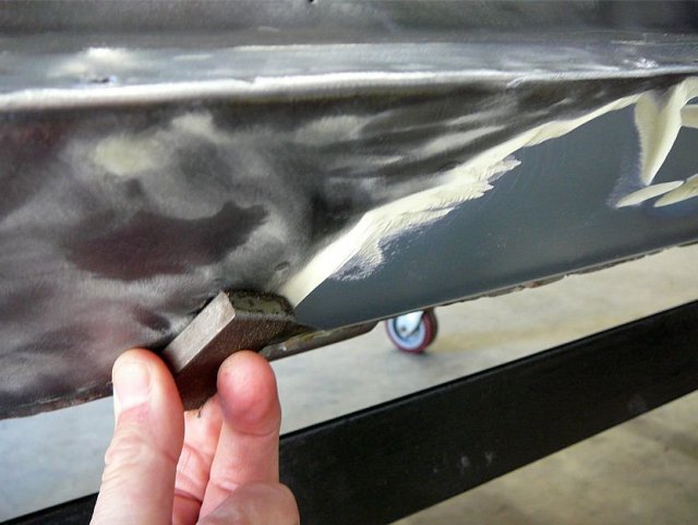 I chose the complete strip down and build up approach for my project and am glad that I did. I discovered how shotty the previous owners repair work was and found unexpected rusty panels in most all the known areas after the old under coating, BONDO etc was removed. I am a bit of an obsessive type and have approached this car with the plan to build it to my liking/standards/approval and never sell it. I wish I could have hauled it up to Los Angeles and had it dipped then epoxy primered, but going the route I went (professional sand blasting) allowed me to meet my current body/paint guy as well as start the body work on the blasters property. There was some signs of minor panel warpage on a few areas where as the dipping process would not have been an issue. All in all for my first old car as well as doing what I can so far to rebuilding it, I am happy that I went this method and exposed all problem areas and gave me a new canvas to strengthen for my intended 500ish whp goals. I will add that I rode in a friends L28et 280Z that at the time was only making mid 200ish hp and ended up cracking the new paint in the C pillars where the lead lines are. I had mine removed and welded solid as a result. I still plan on more stitch welding in the rear area as well as finishing the firewall to complete the front. I think you are forming the right plan to combat that amount of torque and power that you have planned. Just a few pics showing the passenger side requiring a new cut piece to properly line up as well as how thick the bondo was in some places. The first page of my build shows what I discovered under a pretty, new, blue paint job and the very beginning of the snowball rolling down the hill of no return. -