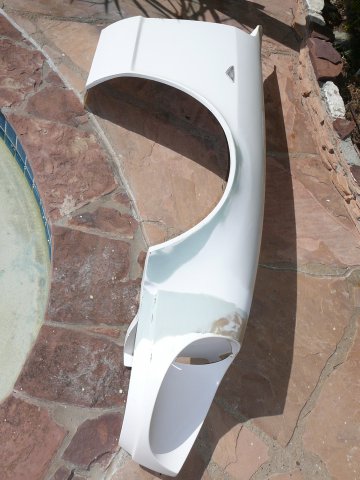 Reaction Research "Subtle z" rear quarter panels (which bond over the cut, stock metal panels) weigh in at roughly 5 lbs.