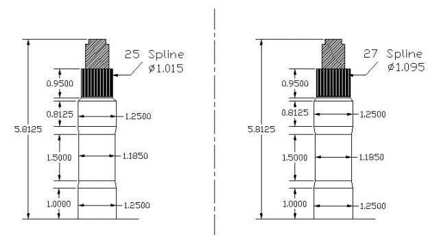 Work was boring, waiting on some other tools to come back up so I start looking for information on 280z stub axle since I want to upgrade to CV's and I found this picture of the two side by side. I can't validate the correctness of the dimensions but if they have the same thread size, what the advantage of using the 280z stub axle? The two pictures I have seen of broken axles have both axles broken off at exactly the same place, where the thread ends and the spline begins. My thoughts being "what is the advantage of the greater spline count if that is not the weak point?" It's the same size everywhere else. The article said 240z axles will break in other places, but can sombody shed a little more light on this, like where they break? I can understand why Rosses stuff is so much stronger, but not why a 280z stub axle would be stronger 240z stub axle. Do the later axles have a better tempering or shot peening? This is the site I was looking at (I believe a fellow hybridz member): http://www.magshooterz.com/280z_stub_axle_swap.htm