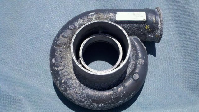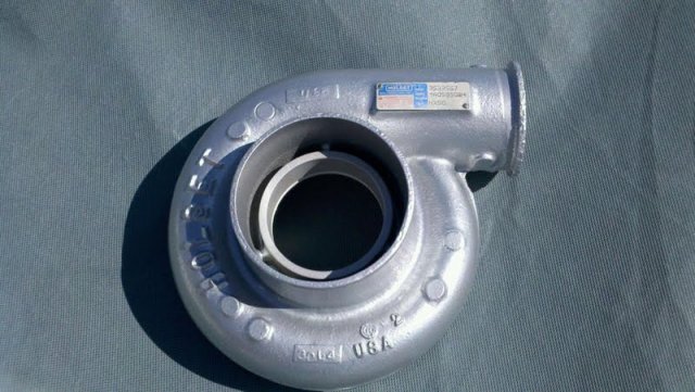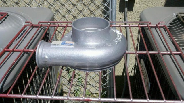 Here are some before and after pics of the compressor housing. It was bead blasted, then powder-coated satin (semi-gloss) clear to keep it looking clean and keep the otherwise unprotected aluminum from getting that white corrosion like a battery terminals get. I had him avoid the turbo tag to keep it looking original. I'll prob just end up bead blasting the exhaust housing too and rattle-can it with some of that high heat stuff sold at the auto parts store. Its held up to several sets of headers I've done in the past, I might get lucky and have it last on a turbo housing as well. Of course I'll bake the paint on too. I don't think I am doing so bad considering I still have ZERO dollars invested since the turbo was given to me.