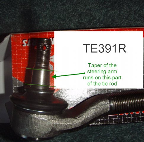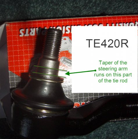 Update time. I will let the pics tell most of the story. But there are 2 type of tie rods for the XT-XW-XY range of falcon. Those known as early Ford and then the later type. Tapers are different but all other dimensions are the same. So for you guys state side the partnumber for Moog items are as follows (used on Mustangs and many other Ford's of the late 60's early 70's) AU/NZ supplier numbers <==> Moog numbers TE391R <==> ES360RL TE420R <==> ES387R If you feel so inclined I guess you could also ream out the stock steering arm so the Ford Pinto sizing can be used = 7 degree taper with .554 top and .626 bottom then you can use ES445RL -