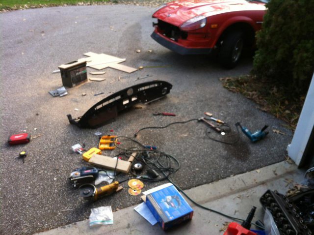 Hey guys, just wanted to show you a project I've been working on for a little while now. I'm putting a carbureted LT1 from a 95 Caprice into my 79 280zx and building it as a simple street car. Since I'm looking for a no frills kind of ride, I built the dash to reflect that. I started by stripping the dash and gauges from the frame, and removing some of the metal supports to open up the back a bit. When I was designing this in my head, I broke it into 3 separate sections: glove box, center dash, and gauge panel. I decided I wanted a place to mount my iPad on the dash, and a few critical gauges, and not much else, so the more space I had in the center for the iPad the better. I took MDF strips and mounted them horizontally where the glove box was to create a curved face that I think is pretty cool. I then measured the area for the center dash. After fitting and cutting the MDF panel out and screwing it onto the frame, I began measuring and trimming the gauge panel and fitted it into the frame as well. I used wood screws and super glue to affix it to the frame, and tried to reinforce it as much as I could. After the glue dried and I was confident the frame was structurally sound, I went to JoAnn's Fabrics and got (yes, I know) ladies swimsuit liner. It was the best stuff they had, so I figured I'd just run with it. I cut off a portion that fit over the glove box section, and began to shape my curve. I used clamps and tape to hold it taut across the face, and created a cool transition area between the right 2 panels. I applied copious amounts of fiberglass resin to it and let it sit overnight. I was pleased with how it turned out the next day. After getting the basic shape, I continued to add layers of fiberglass to the swimsuit liner, sanding down the transitions and high points as I went. After everything had dried, I took the dash out to the car to fit everything up and make sure it had not shifted when it hardened. It had a little bit, but it was nothing that a few washers could not fix, and it definitely was not noticeable. After the mock up in the car, and after the fiberglass was fully hardened, I began to apply layers of fiberglass filler and Bondo to shape my dash. I applied one heavy layer, sanded it, and then applied another to fill in the gaps. I did this for 3 or 4 days, and I gotta say, a random orbital sander is the way to go! I'm finally at the point where the curved portion is perfect, and it's as smooth as a baby's bottom. A little bit of work with some 220 grit and I'll be ready to paint it! After I finish the gauge panel of course. I'm still doing fiberglass work on that side to get the look I want, but I'll update as soon as I make any progress! I'm drilling for my gauges now, and I going with the SpeedHut Dual Gauge to save space. (http://www.speedhut.com/custom_gauge_description-gauge_type-Speedometer_GPS_Dual-auto_number-940.htm) Lemme know what you guys think! Definitely want to get input on how to set up the gauge cluster area. Thanks in advance! Matt