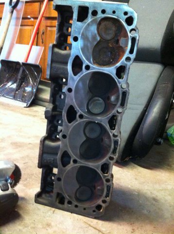 SO once I got home, I unloaded the trailer and cleaned out all the oil that had spilled all over the trailer, and then all over the driveway. Lovely. I separated the LT1 and the 4l60E because I was already planning to sell the transmission, and found that the motor needed more than a little cleaning. Once I got it all apart, curiosity got the better of me, and I started to pull apart the motor. I knew I didn't want to do a full rebuild, but I figured that a little peek wouldn't hurt. I'm really glad I looked inside, because it helped me identify some problems that I would have had to deal with later. Apparently the previous owner's "shed" didn't protect the motor from the elements very well, and there was rust built up on one of the cylinders and in the exhaust port. Once I tore these all down, I took the heads to the shop to get cleaned and magnafluxed. The owner of the shop was a friend of my mechanic's, so when my mechanic dropped off the heads he said he would check them for free. What ACTUALLY happened was he tore down the heads, magnafluxed them, cleaned them, found heavily worn valve guides, and decided to bill me $160 for the tear-down. No call, no conversation, no "you're gonna be billed if we proceed." Needless to say, I was a little frustrated, especially because they had the gall to say "if we replace the valve guides, we'll have to charge you another $160 for the tear-down and reassembly." Suffice it to say I'll be finding someone else to do the work for me.