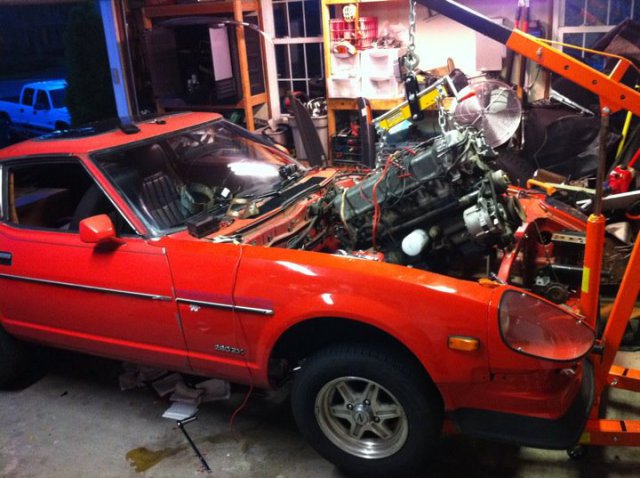 Hey guys, just wanted to find a suitable place to chronicle my LT1 280zx build, and I figured no better place than here! Please comment and critique the build as you see fit, I'm always looking for ways to improve the build. GOALS: I want a car that will be able to run the 1/4 in the low 11s/high 10s, and still be an "economical" streetable daily driver. Obviously, economical varies from person to person. For me, that means being able to get 20mpg highway, which I hope to accomplish with a carb'd LT1/700R4 combo through a 3.54 R200 LSD. PLAN: Aside from the GMPP Carb Manifold and the headers, everything is gonna be stock to start with. I'm going with a Holley 750 Vac secondary for the carb to start, eventually moving to an Edelbrock 750 Mech secondary when the chassis is more rigid and the manual trans (T56 in a few years) is in place. Body is in good shape with some minor rust underneath. I'm going through and replacing all the bushings and suspension components, gutting the car, and making the frame/body as rigid as possible. Here's what I've done so far.