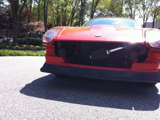 WHEN I PICKED UP THE CAR... It looked like this! I was very happy with the condition of the vehicle, and for $900 it seemed to be a fair price. The car only had 100,000 miles on it, and the only major drawback as far as I was concerned was the sunroof, which will be eliminated before too long. The previous owner had planned to do the JTR V8 swap, so he already purchased the V8 radiator and mount from JTR with a 16" electric fan, which was less than 300 miles old on this vehicle when I purchased it. He also tore up the front bumper, so he replaced it with an MSA urethane front bumper.