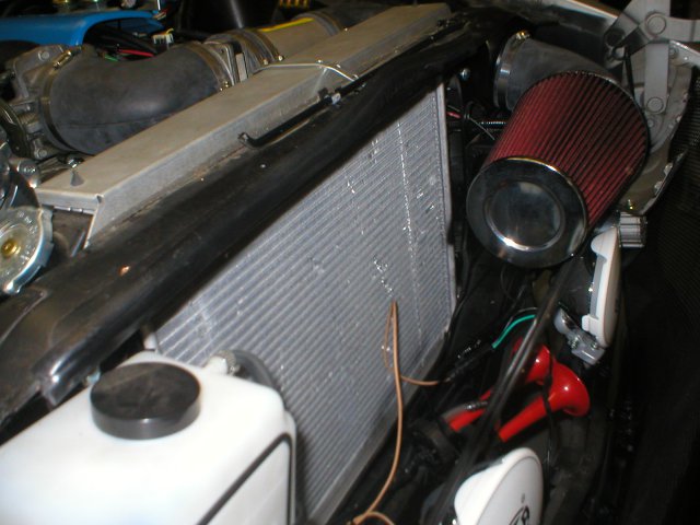 RebekahsZ, I am watching your build trying to get motivated !!!! I have a 77' 280, and I am utilizing the area where the stock intake went. The core support had a hole that was a bit tight, so I broke out the dremel with a small grinding wheel and went around the whole circle until the aluminum tubing fit through. On my list is to take some flat stock shape like a " L " and make some support brackets if it the intake needs more support.