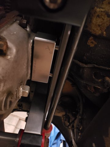 I am bringing this back from the dead as I am now digging into a vibration that I'm experiencing at anything above 60mph. I pulled my driveshaft and am getting an aluminum one made with spicer joints. Diff flange to rear of trans is 24" on the dot. I have already dropped off my old DS, and when it was installed it was snug, so the DS shop suggested a slightly shorter by about 0.25" I also looked into the actual alignment of my driveshaft using a laser level. The cross is about 0.75" off from center, which is just under 2*. I think that's fine, but someone please let me know if that's too much. Lastly, some general problems I have with the T3 kit after using it for 4ish years. The moustache bar hits the spare tire well, to the point that it's dented the metal. Below are the pictures, which most people don't see. It is keeping the diff inline though which is nice, but the spacing could use some work. The RT mount with a snubber also seems to have an issue that I just noticed since digging into it as well. Due to moving the diff rearwards, the snubber is now contacting the rotating pinion flange. It seems to have self clearanced, and when everything is snugged up I can still turn the flange by hand albeit with a little strength needed. I can't move the RT mount further backward due to the lip on the metal, I would have to drive that away to do that, I may try that and instead of the snubber, I will use the GM bushing that bolts to the diff. I am also going to change the front diff mount out for a T3 piece as from what I've read there is some slotting to be able to move the diff and align it better. I have recently also started the swap of my Koni struts into the strut housings, so I will post progress on that. I'll be getting new top hat bushings since one of mine just split in two when I was taking it apart, but I am essentially going through all my rear suspension at this point. The koni yellow 8641 1031SP1 is the same length and fit as the Tokico BZ3015 which is historically the strut people would use when they section the rear. I will report back with the fronts, it should be a 8641 1142 koni yellow vs a tokico BZ3099. The difference is the gland nut provided by Koni, the tokico has an inner ring that won't fit in the strut housing with the strut.