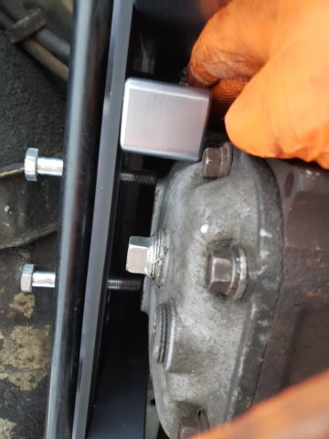 So I got it all in, I did have to flip the diff mount (move the diff position backwards aka the later style) and I had cut the spacer down to 15/16ths and buy some new length bolts. Here are the spacer pics when I had the diff in the stock, forward 1970 position, notice the amount of "slack" in the spacer to diff cover vs when I rotated the lower diff mount 180* forward to move the diff back to the 1972 position: And this is the final product. I need to get it aligned still, but I have work on the front also Here is are some bonus pics of the Trans mount (type 2) that I will be replacing with the T3 KA trans mount (when I get the trans rebuilt) And here is the amount the driveshaft pulls out. My driveshaft measures 21 1/8 inch from u joint center to center, so I'm looking for the longer 22 1/4 inch. I have a few leads, but need to pick it up. Final plans are to go with the Ka transmission with a converted L bellhousing, T3 KA trans mount, T3 front diff mount and the "power braces" they sell. The front is getting T3 arms and TC rods, and new tie rods. Eventually I'll get the steering rack rebuilt and put in new bushings and a solid steering knuckle. Then I think the suspension will be done.