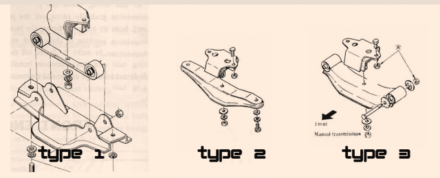 So I started to install my T3 goodies from the black Friday sale this past weekend. I have the mustache bar and drop mounts and rear control arms going in. I currently have an STI r180 diff with Beta motorsports stubs and stock 240z axles and a RT mount. The issue I'm having is that after fitting the T3 mustache bar, it pulls the diff back about half an inch and that is causing the front diff crossmember to not line up. This is pictured below: I understand the early 240z had the diff slightly more forward and htis was fixed in the 72-73 cars. I am wondering if I need a different cross member or mount. Below is a picture of the early 70-71 mount and later 72-73 mount, which look almost identical (but I have not found any evidence that they are different), along with a picture of the crossmember and mount I have. I managed to get two bolts in the cross member, but I had to really loosen the bolts for the T3 mustache bar to the diff, I don't think it will all bolt down snug unless I can get the front dif mount to move back. Here is a picture of how all the parts are installed currently. I want the diff positioned towards the rear to correct the axles angled, but I don't know what I need to make the front of the diff line up properly.