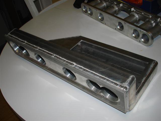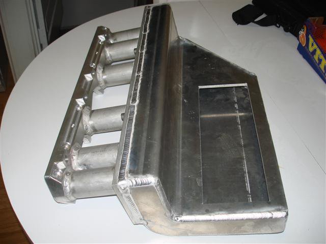 5. I haven't fitted it under the hood as my 240Z is fully functional right now. You can't tell from the pictures but the plenum actually tilts downward about seven degrees to account for the engine lean. That lets the SC sit flat and looks better too. I'll slap it on the long block tomorrow or Saturday and take a couple more pictures. There were numerous measurements taken to ensure clearance at the strut tower and under the PDK strut bars. It sits below the valve cover height and strut bar so hood clearance is a non issue. I decided to build the intake in two pieces so the runner and header hardware would be easily accessed. It weighs quite a bit despite being aluminum. An adjustable brace will come up from the a/c compressor bracket to support the outer edge weight and provide additional stability. I'll have to work out cold air ducting.