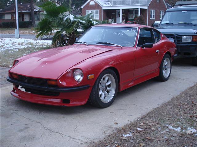 9. Somewhere is a very upset PO of this car. I really feel sorry for the fella but life has it's bad moments. It was auctioned off by the Morale/Rec/Welfare office of the local Naval Base. Rumoured it was parked at the auto hobby shop. Maybe the owner had to ship out or was stationed elsewhere and couldn't retrieve the car. It will be taken good care of by it's new owner if that is any consolation. I got into a bidding war with a knucklehead and paid more than I had intended. I still got a good deal. It was setup as a track car. Built-in rollcage (less the front bars to firewall), Panasport wheels (like new), coilovers, camber plates up front, Wilwood disc's, heavy sway bars, ATL fuel cell, MSA 6-1 header, Magnaflow exhaust, 240SX throttle body, CAI, fiberglass bumpers, etc. Little rot in the rails under the seats but no other serious rust issues and I've got a set of new rails in the garage. Battery area is great. No rust in the floors, sills, doglegs, fenders, hood, hatch or anywhere. Couple of dings, scratches and fading paint. Got it home and it wouldn't start. Left the battery changer on it for a while. Had to use a remote start button to turn it over (bad switch, wiring or interlock unit?) Just turned over slowly for a while then suddenly it roared to life. It spit and sputtered for several minutes then smoothed out to a nice tickover and thumping exhaust (must have a hotter cam installed). Nice clean exhaust. No smoke at all. I rolled it off the trailer, checked the brakes and clutch. A quick spin around the block was fun. This car hauls azz. There's a knocking in the rear when slowing down and when reversing. I suspect a halfshaft u-joint has failed which might be the reason it was parked at the auto shop. When the snow melts I'll climb underneath to get a better assessment. Also need to setup for a parking brake (Wilwood combo calipers I'm guessing) to pass state inspection. Now I'm the owner of two running Datsuns, my pristine 71 240Z and this soon-to-be daily driver.