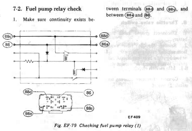 1975 280z fuel pump/power relay resistorNewZed replied to rolmsted's topic in S30 Series - 240z, 260z, 280z I'll see if I can figure it out but it's a tight fit and I don't have the urge to take things apart right now. In the meantime, you might just consider getting a typical Bosch relay with the diode already spec'ed and built in. They're very common. They even mold or print a diagram on the case, showing either a diode or a resistor or neither. I'm sure one of those would do the job and save you some time. http://www.bcae1.com/relays.htm