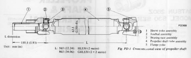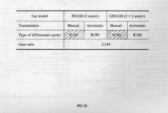 1975 280Z's have the oddball R200 pinion flange. It has its own unique bolt pattern and bolt size (might be the same as the 300ZX's, not positive. Definitely not like the other Z cars though). So if you cut a 1975 R200 driveshaft, it's only good for 1975 R200's. Beware the 1975 R200. And the R180 pinion flange location in the car is not different than the R200 (I've never had an R180 but all signs seem to show this). You can swap an R180 for an R200 and use the same driveshaft. Except for the very early 240Z's with the forward-mounted diffs, that use a shorter driveshaft (which is usable with the 240SC/71C swap though, except 1975 cars). A good general reference - http://www.zhome.com/ZCMnL/tech/R200.htm And a couple of excerpts from the 1978 PD chapter.