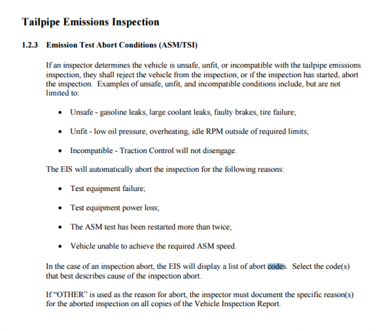 It's probably a code that his machine shows related to something like throttle opening, or RPM. Try to find a smog test reference. Did a Google and found this - http://smogcheck.ca.gov/pdf/Smog_Check_Manual_ENG_2013.pdf with the page shown. Could be that his equipment actually lost power, not the car. Worth a follow-up. He should have been able to tell you what the code meant but many people today are just trained to a minimum level. Just do what the computer says.