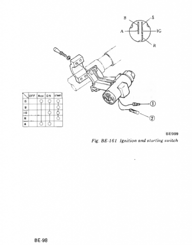 This might help. From Body Electrical. You might figure things out faster with a meter though. Not sure on the letters. Maybe B = Battery, A = Accessory, I = Ignition relay, S = Starter. Can't think of an R right now. Edit - actually those letters may not mean much. Looks like R powers the coil, and I powers the TIU, for example. But the schematics in the larger wiring diagrams use them, in a chart.