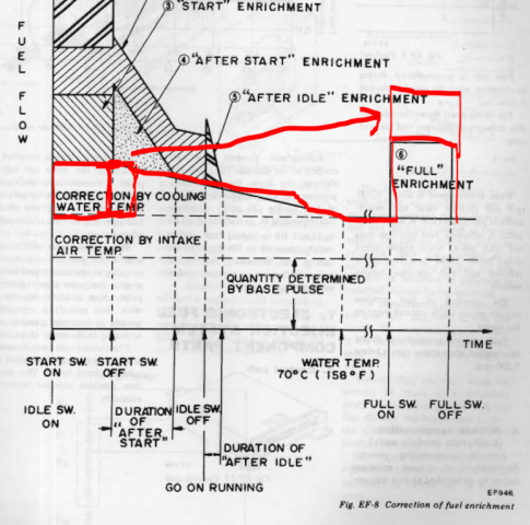 I read the diagram and explanation as 27% of the base pulse is added on top of the other correction factors. So by getting coolant correction back in to the equation, you lose fuel enrichment as the engine warms up compared to no coolant correction. If the diagram is approximately to scale, that's a lot of fuel.
