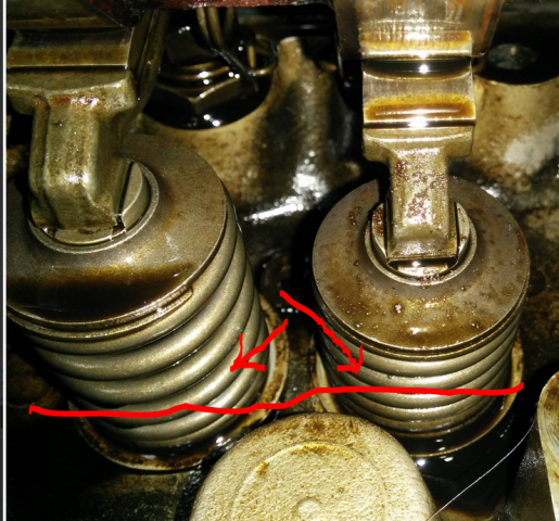 That's close. He wanted you to tilt the head so that the oil would be completely covering a valve seal. But it looks like your engine is still in the car so that might be difficult. Added a picture showing where the valve seals are (they sit around the valve stem and on top of the valve guide, where it passes through the head to the combustion chamber, inside the valve springs) and a squiggly line representing oil level for the test. There's a thread in the FAQ, L-Series section, about honing and re-ringing. Probably worth checking those valve seals first though. Since you have the engine apart and it's been sitting, take a good look at each valve to see if oil has been leaking by. http://forums.hybridz.org/topic/81528-replacing-piston-rings-with-the-engine-in-the-vehicle-l-series-faq/