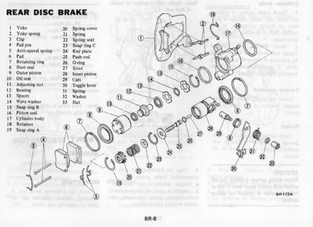 '82 280zx rear brake caliper rebuild questionNewZed replied to tamo3's topic in Brakes, Wheels, Suspension and Chassis 1979 and 80 look like they have the star-shaped spacers. But they use a snap ring, not the wire ring you show.