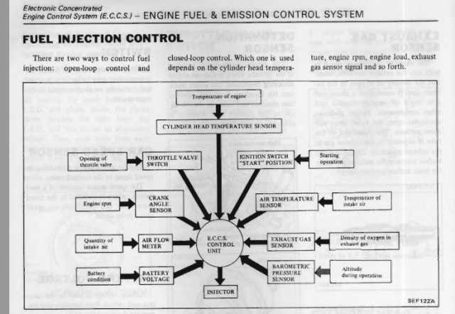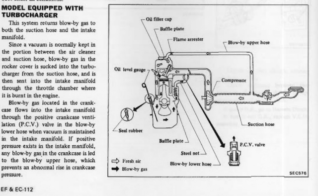 Actually, the small area of the dip stick exposed to pressure probably isn't enough to lift it out. I made a funny. With the PCV hose connected to the J-pipe you'll be pressurizing the crankcase under boost. You could fab in a PCV valve to get back to factory specs. The AAR passes air across the throttle blade to let air past the throttle for higher idle speed. But, the air is still metered by the AFM. It's not clear if you left one of the three hoses from the T open or capped all of them. The FSM's cover a lot but it's pretty spread out over the pages and there are some weak areas. Like how the AAR is plumbed in the turbo/ECCS system (the pictures have no detail. But, in general, the crankcase and intake system need to be completely sealed from outside air. All air must enter through the AFM. No exhaust probably means no O2 sensor. So you're in open-loop all the time. With the N42 intake you've probably removed some of the vacuum control valves also. They have an effect. There's a lot of stuff needed to make the engine run right. I don't have a turbo car but I like to keep up with what they need, for future reference. Good luck. Pictures are from 1983, 1981 might be simpler.- 10 replies