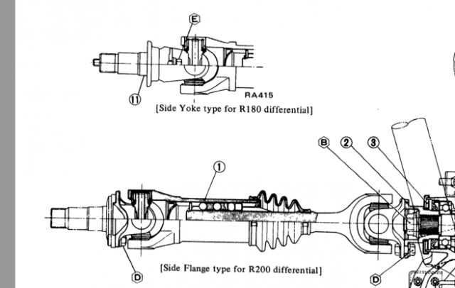 I would read jmortensen's diff thread in the FAQ section. You might have some changes from stock. A welded R200 might be going backward. Or maybe Nissan converted to clip-in axles with the 280Z R180's. Edit - actually that picture I posted is from the 77 FSM. So what you have doesn't match. http://forums.hybridz.org/topic/49194-differential-cv-lsd-hp-torque-r160-r180-r200-r230-diff-mount/