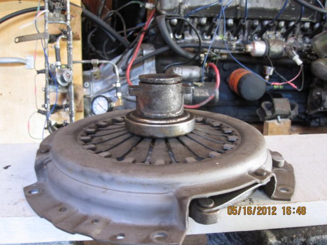The flywheel that I used with those parts measured a hair over 7/8" from the surface that touches the crankshaft to the pressure plate mounting surface. So the distance from the crankshaft mounting surface to the two surfaces of the ears on the collar that touch the fork would be 3 1/2 plus 7/8" or 4 3/8". From crankshaft through the stack of flywheel, pressure plate and collar to where the collar contacts the fork. The flywheel thickness itself was 1" from back to front. It came on a 1976 280Z L28 and I wouldn't be surprised if it was the original. Good luck with it, I'm sure there's leeway in the range possible that will work. I'm interested in the measurement you end up at, just for the record.