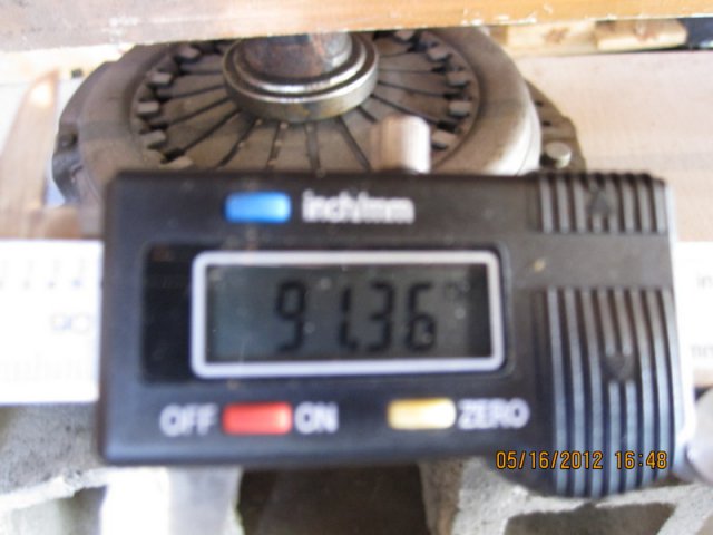 This comes up all the time and I just realized that I have the pieces in the garage to take the critical measurement. Assuming that the slave cylinder is the same distance from the back of the block and the flywheel thicknesses are the same, and the clutch forks are the same, then the distance from the bottom of the pressure plate to the surface that fork sits on is the distance that needs to be within a certain range. The pressure plate and the collar are the two things that vary over all of the combinations. So here's a few pictures of a pressure plate with a long collar, a combination that I used to have on my car. The pressure plate is the one I used, the collar is not, bit it's identical to the one that was used with that PP. The distance is 90 mm, or 3.5 inches, from the surface of the flywheel to the surface the clutch fork rides on. If I was starting from scratch with unknown parts, that's the distance I would shoot for. Edit - the caliper measurement looks off in the picture due to camera angle.