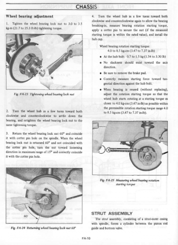 The front bearings are tapered roller bearings. They should have no play at all and actually have a little bit of preload. You can reset tapered bearings if they're not too worn. When the front bearings get loose the Z's tend to wander, follow road ruts, and have loose feeling steering. The rear bearings are ball bearings. Wear on those is usually determined by how "grindy" they feel when rotating. Of course, the Axle chapters in the FSM have the official factory methods for determining if replacement is needed. The front bearings are fairly easy to replace, the rear bearings take some work. -