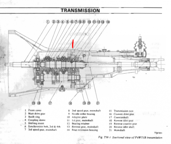The FS5W71B does not really use a "bell housing'. It's a combined bell housing and front gear case. If your FS5C71B uses a separate bell housing like the FS5C71A then it won't work. I could only find a picture of the A model, not the B model, in the 1972 FSM. The W and the C designate the type of synchro system I believe, so if the B designates the case style you might be able to use it. But. That FS5C71B might be worth more to a restorer. You could probably trade it for a worn out transmission that will work better. There are small issues with the early cases, like the reverse switch location (mentioned in that ZHome writeup, I think), that can be avoided with a later model case. The A transmissions are three piece, and the B's are two piece. Steel plates separate the aluminum pieces.