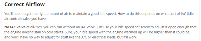 Later ECU's have the computer control timing and the IACV, and they have air regulators to keep the idle high during initial warmup. Read the EFEC chapters of any of the FSM's and they'll describe the functions of the parts. Why work from hunches when you don't have to?