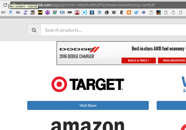 Testing - https://www.summitracing.com/ Let's see what happens... You're right. Image copied below. Trying Amazon now. https://www.amazon.com/ Amazon works fine. Summit must have a problem. How about a hybridz.org link to be sure. Do loop... http://forums.hybridz.org/topic/126603-site-redirecting-links-to-viglink/?do=findComment&comment=1183339