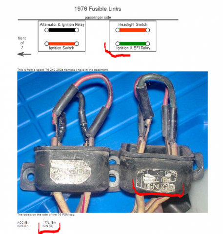 You meant "incorrectly". The EFI link isn't even in that fusible link block you're replacing. The red link on the atlanticz page is rated too high for the one it's replacing. The gauges are shown in the FSM. Brown is lower gauge (lower current capability) than both green and black.